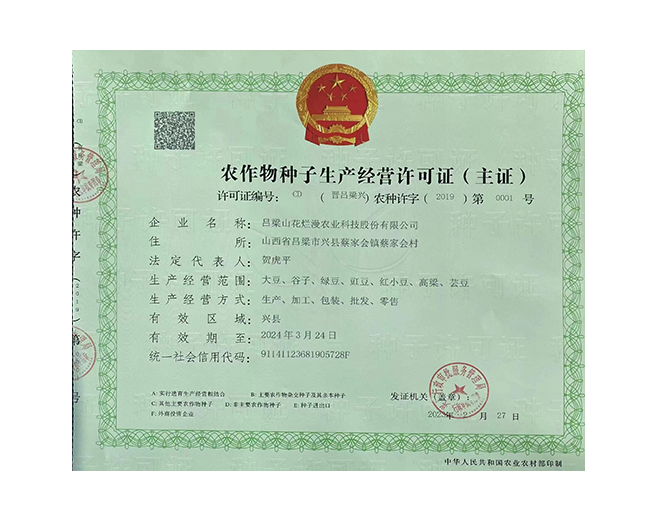 呂梁山花爛漫農(nóng)業(yè)科技股份有限公司是山西省農(nóng)業(yè)產(chǎn)業(yè)化重點(diǎn)龍頭企業(yè),公司成立于2008年,法人代表賀虎平,注冊(cè)資本1000 萬元,現(xiàn)有員工 30 人。公司位于興縣蔡家會(huì)鎮(zhèn)蔡家會(huì)村建有占地面積1萬多平方米生產(chǎn)區(qū)和辦公區(qū),年總加工雜糧能力達(dá)到4萬噸。擁有一套日精加工50噸谷子成套設(shè)備生產(chǎn)流水線;擁有一套日精加工30噸豆面、蕎面設(shè)備流水生產(chǎn)線;擁有一套日精加工50噸紅小豆、豇豆、綠豆、腎型黃豆、紅蕓豆設(shè)備流水生產(chǎn)線,2020年引進(jìn)省農(nóng)科院農(nóng)產(chǎn)品加工研究所谷子精深加工技術(shù),目前設(shè)計(jì)年產(chǎn)300噸的小米油加工一條龍生產(chǎn)線已經(jīng)安裝調(diào)試完畢,產(chǎn)品經(jīng)化驗(yàn)達(dá)到國(guó)家一級(jí)油標(biāo)準(zhǔn),并獲得兩項(xiàng)專利證書。主要產(chǎn)品有“山花爛漫”牌有機(jī)小米、綠色小米各種精美包裝系列;蔡家會(huì)村豇豆面、豌豆面等雜糧面、手搟豆面系列、以及有機(jī)精品雜糧系列。擁有“山花爛漫”山西省著名商標(biāo)。公司采用線下和線上銷售相結(jié)合的營(yíng)銷模式。